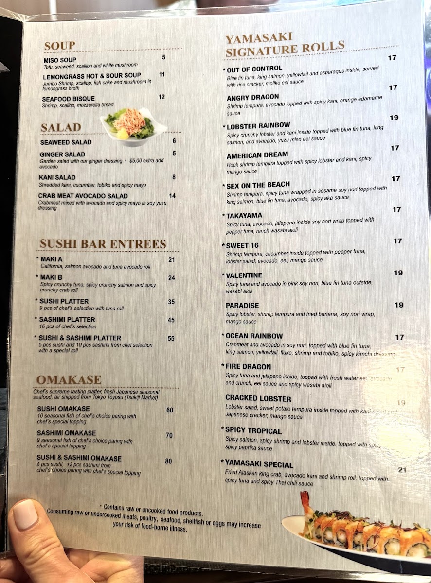 Yamasaki modern sushi Menu